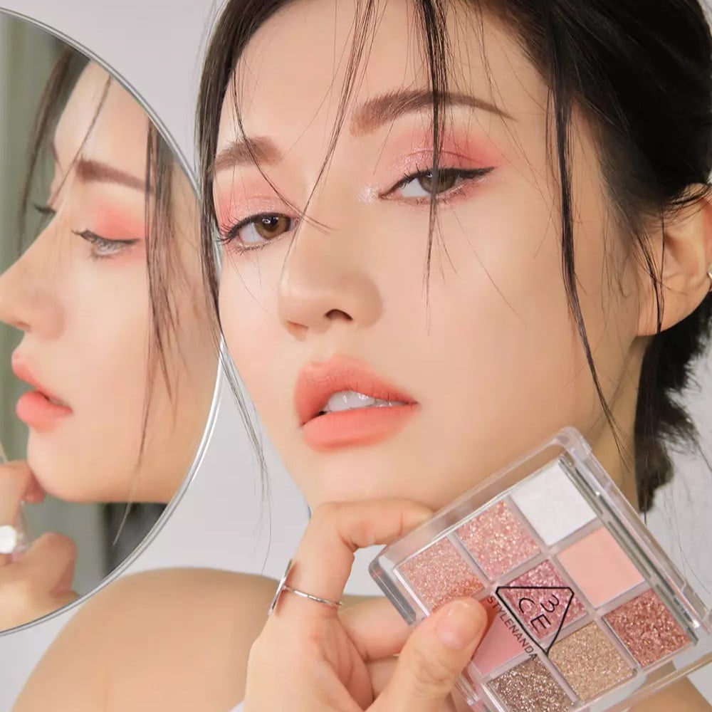 Bảng phấn mắt 9 ô 3CE Multi Eye Color Palette thiết kế vỏ trong suốt siêu xinh, sang, xịn, mịn vô cùng, bảng màu mắt cực đẹp, siêu lấp lánh và “chanh sả” với những tone màu hot trend thời thượng, không quá kén da, thích hợp với nhiều phong cách khác nhau.