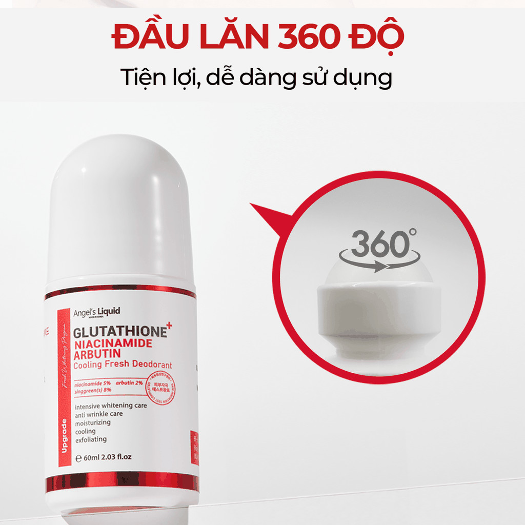 Lăn Khử Mùi Angel's Liquid Glutathione+ Niacinamide Arbutin Cooling Fresh Deodorant Giảm Thâm Dưỡng Trắng 60ml
