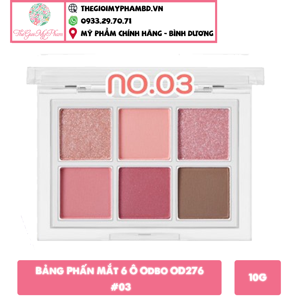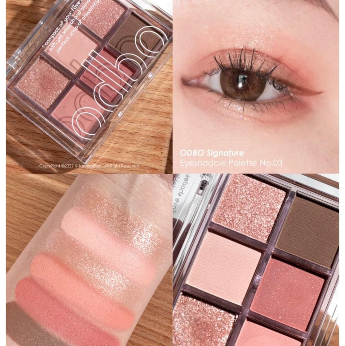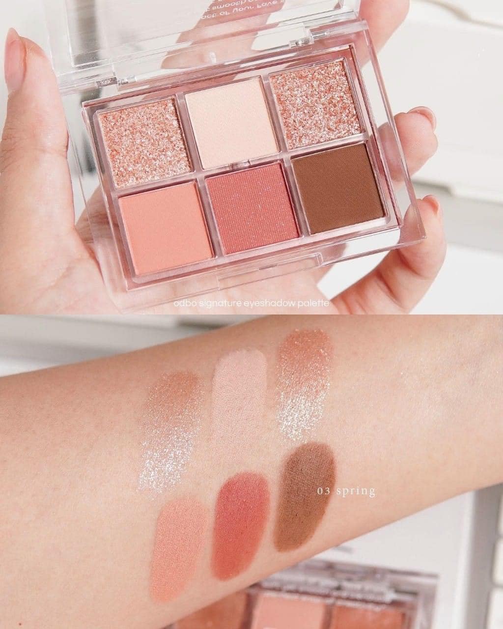 - Bảng phấn mắt 6 Ô Odbo Signature Eyeshadow Palette được thiết kế với 6 màu sắc khác nhau, với các tone màu từ đậm đến nhạt, từ dạng phấn mỏng mịn đến dạng phấn nhũ.