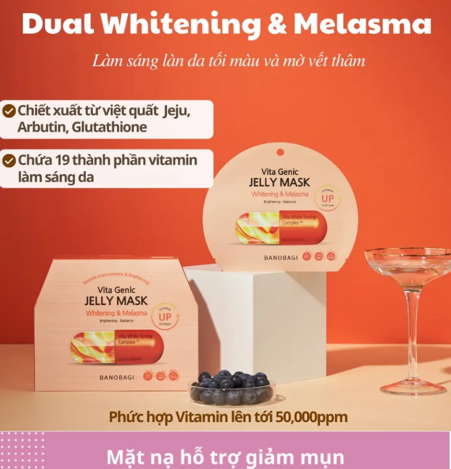 Mặt Nạ Banobagi Vita Genic Jelly Mask Whitening & Melasma 30g: dưỡng sáng và làm đều màu da.