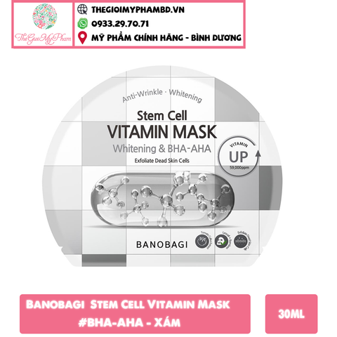 Mặt Nạ Tế Bào Gốc Banobagi Stem Cell Vitamin Mask 30g là phiên bản mới của dòng mặt nạ giấy dưỡng da đình đám từ nhà Banobagi. Chất liệu để làm nên mặt nạ Banobagi Stem Cell Vitamin Mask vẫn là cotton 100% tự nhiên, vô cùng thân thiện với mọi làn da, kể cả da nhạy cảm, da dễ kích ứng. Mặt nạ Banobagi không phải là loại mặt nạ thông thường mà là mặt nạ cung cấp vitamin dạng gel.
