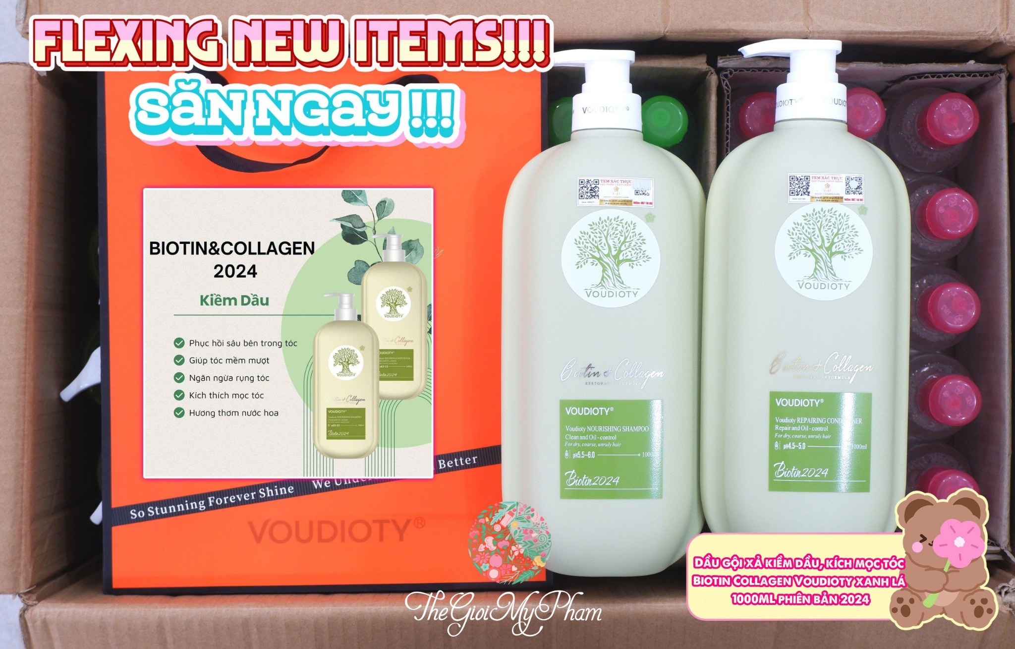 Dầu gội xả Biotin Collagen Voudioty phiên bản 2024 chống rụng tóc, phục hồi , giảm gàu, kiểm soát dầu, siêu mềm mượt