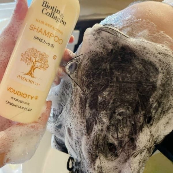 - Lấy 1 lượng dầu gội BIOTIN COLLAGEN vừa đủ bôi lên tóc ẩm.
