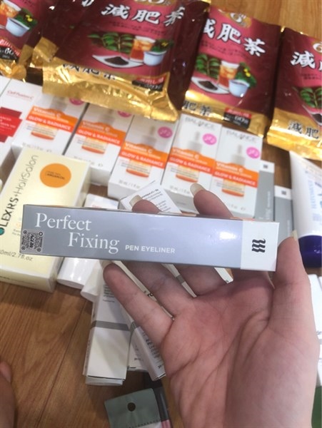 + Tay kia cầm bút kẻ một đường sát chân mi và hơi chếch lên ở phần đuôi mắt.