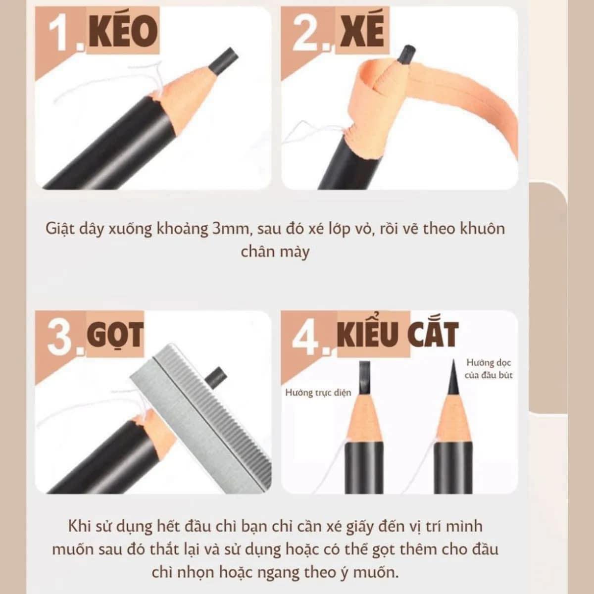 - Giật dây xuống khoảng 3mm, sau đó xé lớp vỏ, rồi vẽ theo khuôn chân mày