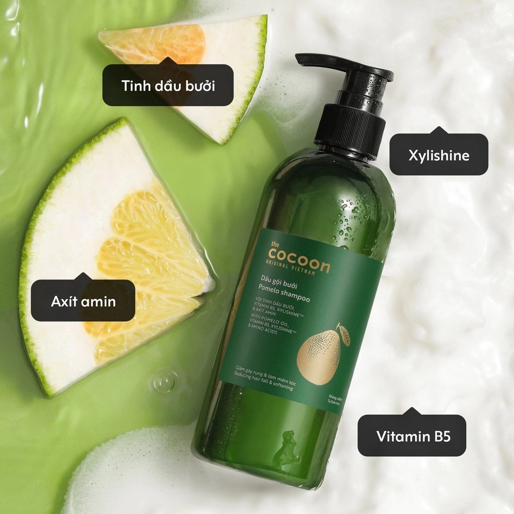 Dầu Gội Bưởi Cocoon Pomelo Shampoo Giảm Rụng & Kích Thích Mọc Tóc là dòng dầu gội đến từ thương hiệu mỹ phẩm Cocoon của Việt Nam, với thiết kế đặc biệt công thức dịu nhẹ không chứa sulfate thân thiện cho mái tóc và da đầu. Dầu gội với thành phần kết hợp từ tinh dầu vỏ bưởi Việt Nam truyền thống, Vitamin B5 và hoạt chất dưỡng ẩm Xylishine™ mang đến khả năng làm sạch tóc, giảm gãy rụng và kích thích sự phát triển của tóc.