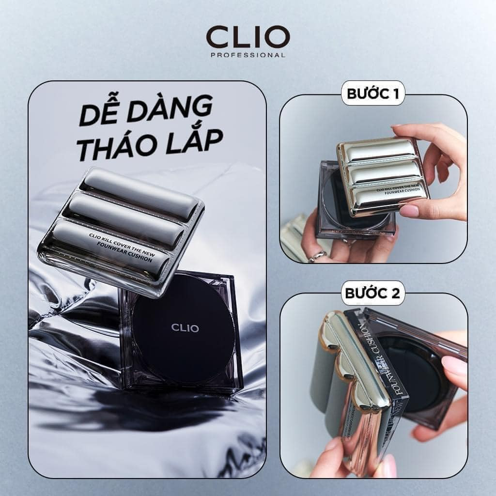 - Phấn Nước CLIO Kill Cover The New Founwear Cushion SPF 50+ PA+++ (Phiên Bản Giới Hạn Padding Case) là loại phấn nước che khuyết điểm kiềm dầu cho da dầu mang lại độ che phủ hoàn hảo cho da dầu, da hỗn hợp và da có nhiều khuyết điểm.