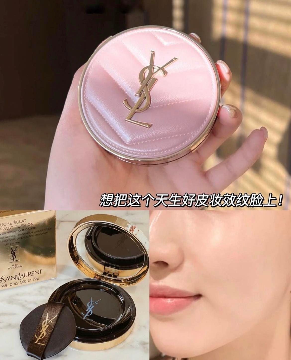 Cushion YSL Touche Eclat Glow-Pact với chất kem mịn màng thẩm thấu nhanh chóng vào làn da cho bạn một làn da tươi trẻ tự nhiên, không hề nặng mặt hay bóng nhờn khó chịu. Thiết kế bao bì Cushion YSL Vỏ Da Hồng tươi trẻ và thanh lịch, nhẹ nhàng nhưng không kém phần thời thượng, sang trọng và đẳng cấp.