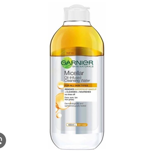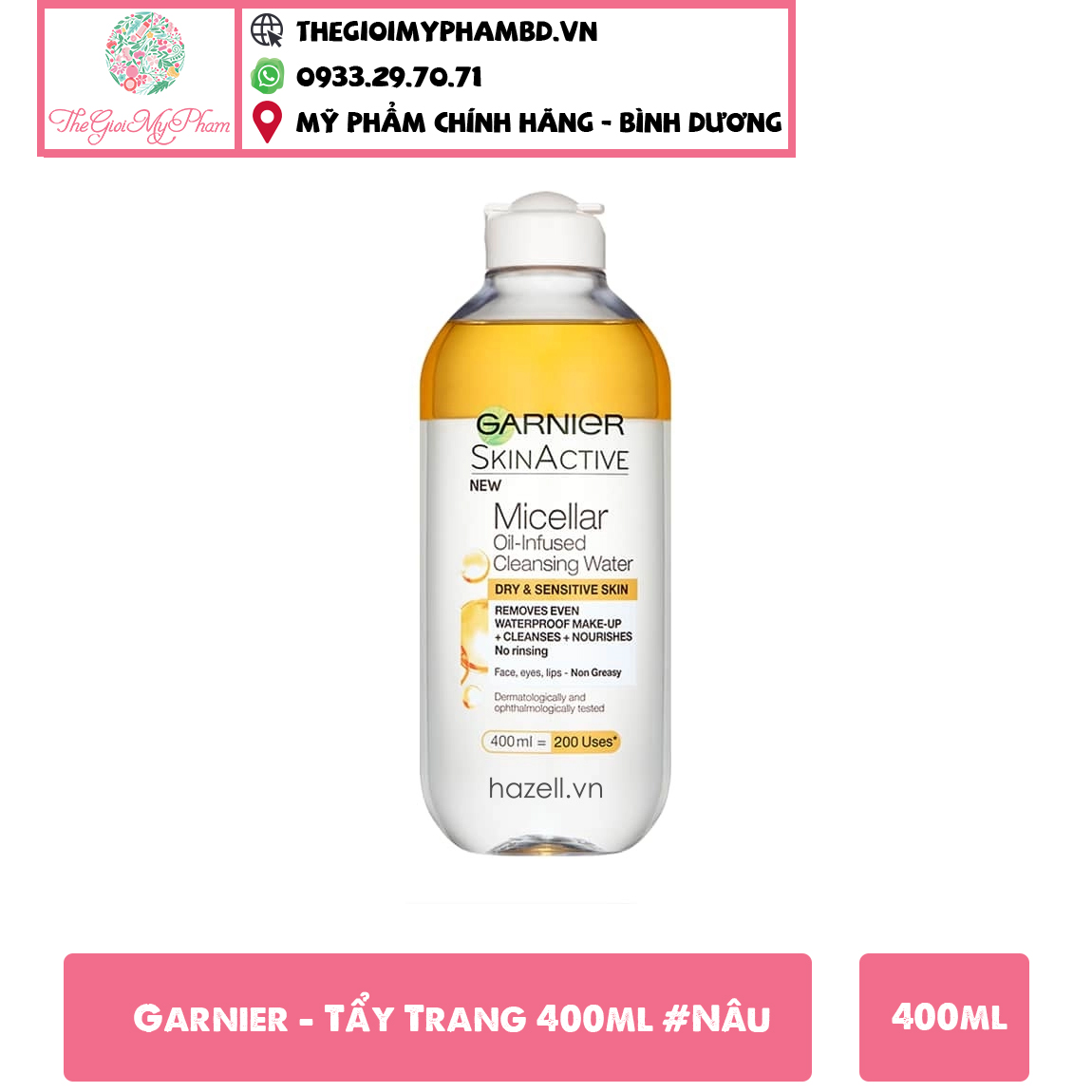 Nước Tẩy Trang Garnier Micellar Oil Infused Cleansing Water 400ml: dành cho da trang điểm, giúp làm sạch sâu da.