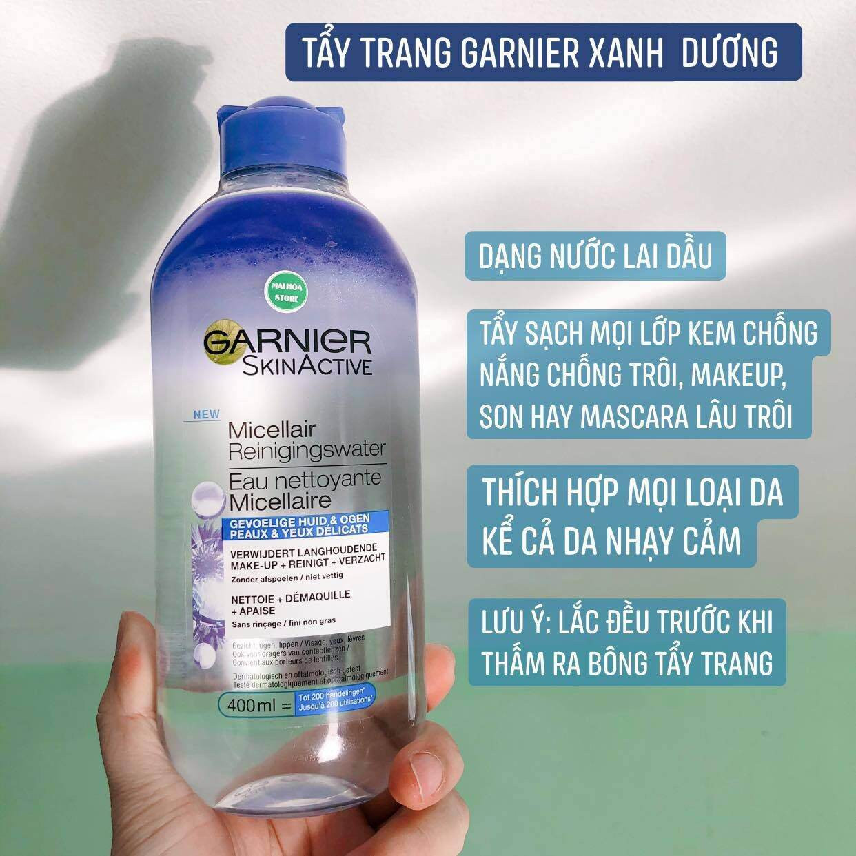 - Đồng thời, vẫn là tẩy trang dung dịch nước nên không tạo cảm giác nhờn dính và bí bách, cảm giác rất nhẹ dịu cho những làn da nhạy cảm. Garnier còn “tự tin” ghi lên bao bì rằng “em Garnier Skin Active Oil Infused Micellar” bạn có thể tẩy trang bình thường mà không cần rửa lại với nước.