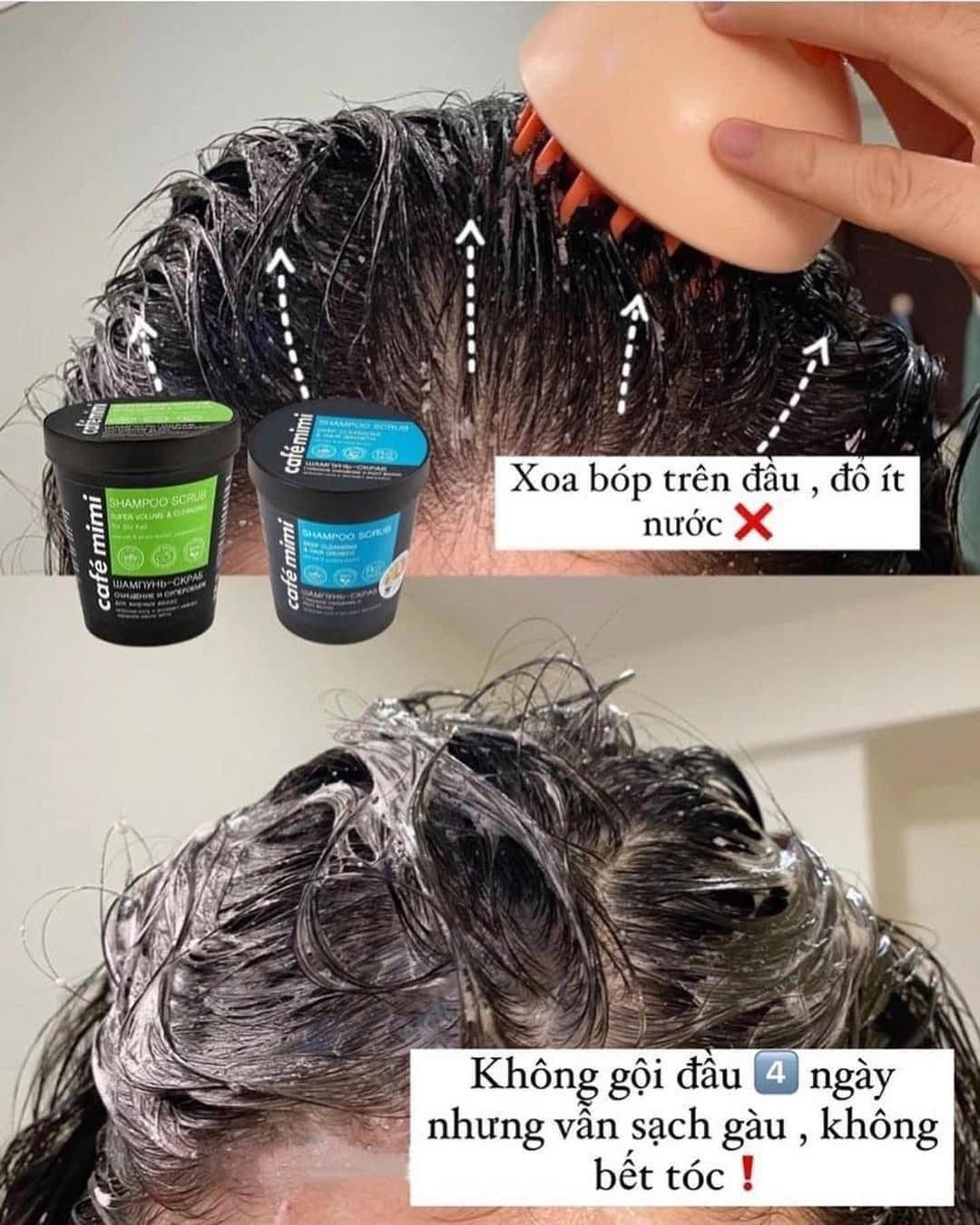 - Nên dùng tẩy tế bào chết da đầu Café Mimi 1 - 2 lần/tuần.