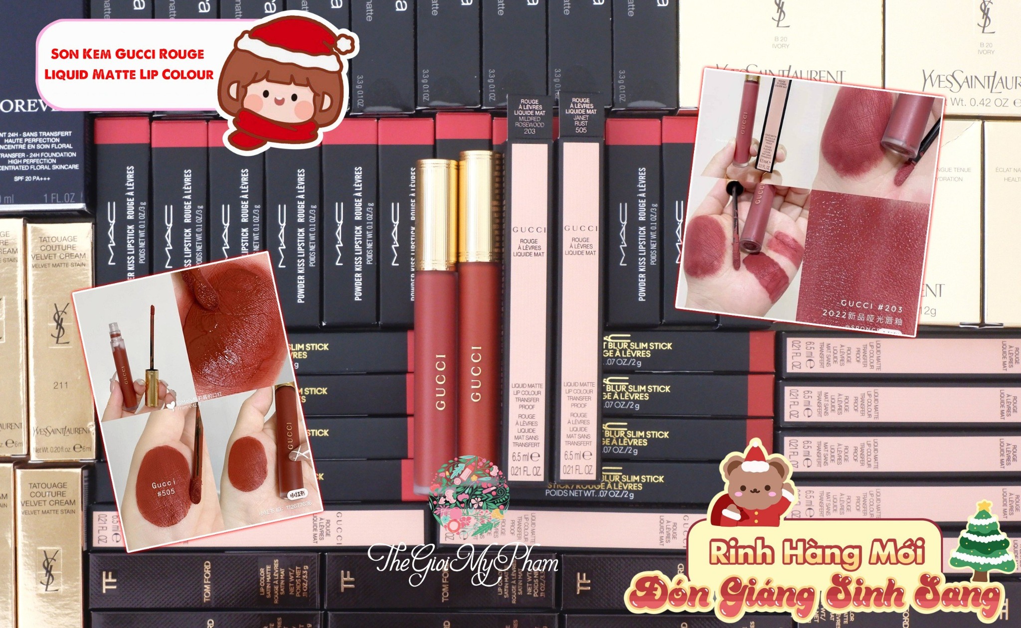 - Son Kem Gucci Rouge Liquid Matte 203 Mildred Rosewood thuộc BST mới nhất 2022 của nhà Gucci với chất son lì nhưng kết cấu siêu mướt mịn. Son kem gucci 203 với màu hồng pha nâu siêu tây , tone màu đất chính là sự lựa chọn hoàn hảo phù hợp với xu hướng trang điểm tự nhiên hiện nay.