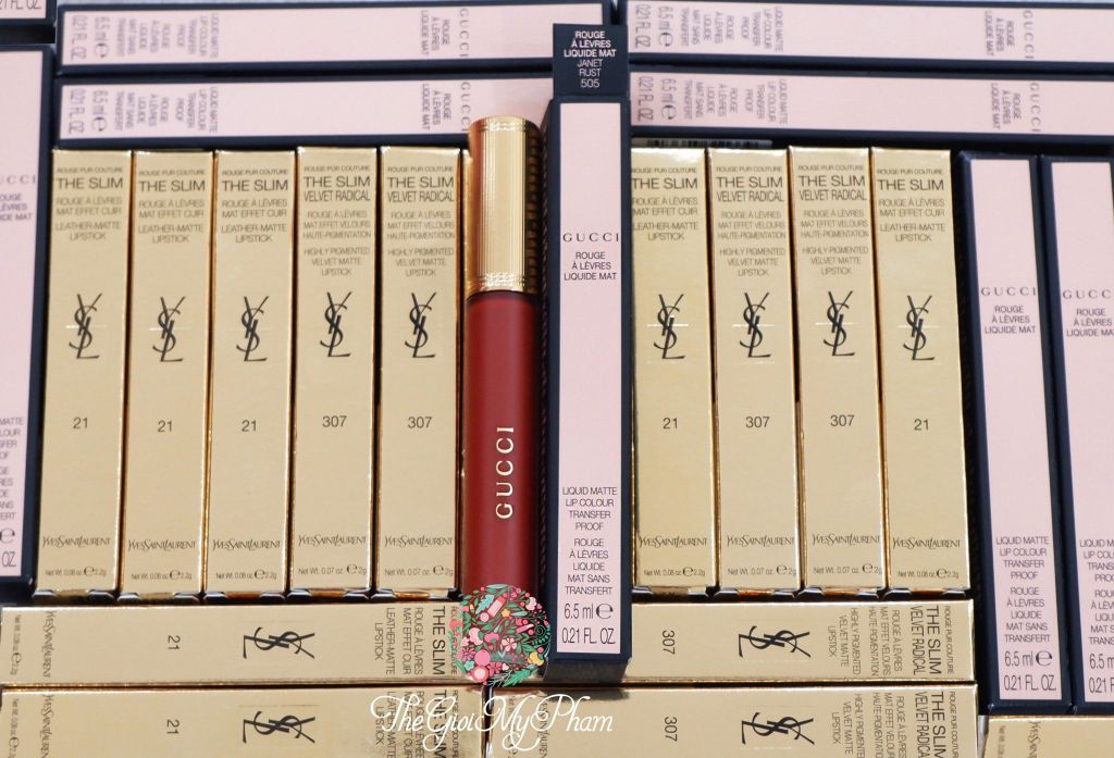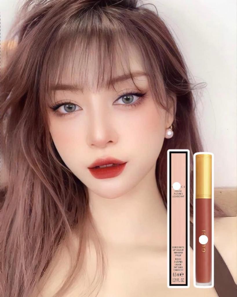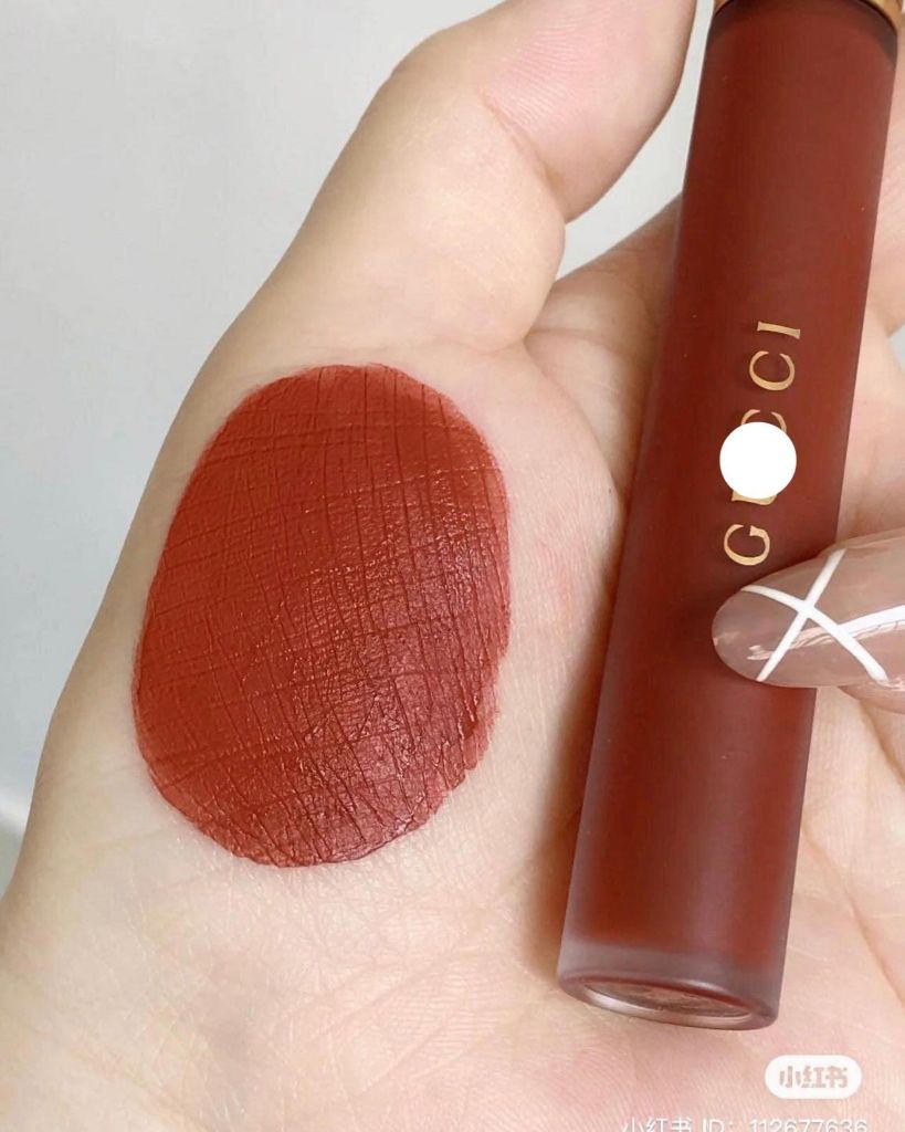 Son Kem Gucci Rouge Liquid Matte Lip Colour với chất son kem lì cực phẩm cho môi xinh, mượt mà bền màu dài lâu. Một cây son phô diễn hết nét đẹp của sắc hồng, mềm mịn, che phủ tốt cực kỳ, thoa đường nào “ăn” đường nấy.
