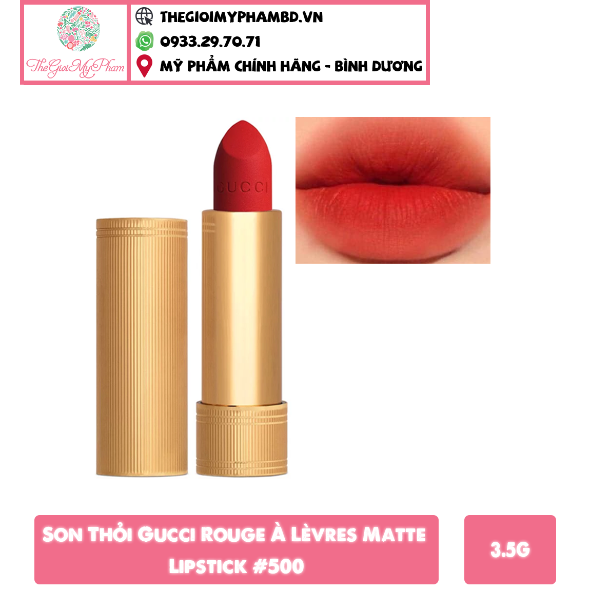 Một trong những tông son quyến rũ, nóng bỏng nhất của bảng màu Matte Lipstick, son Gucci 500 Odalie Red chứng minh được độ hot khó cưỡng.
