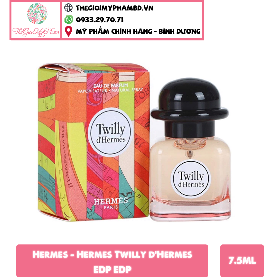 Twilly D’Hermes EDP được ra mắt trình làng vào mùa thu tháng 8 năm 2017. Sản phẩm lấy cảm hứng từ tuổi trẻ, thanh xuân căng tràn của các cô gái. Cùng điểm nhấn là chiếc khăn lụa màu sắc trẻ trung đại diện cho những cô gái phương Tây thanh lịch.