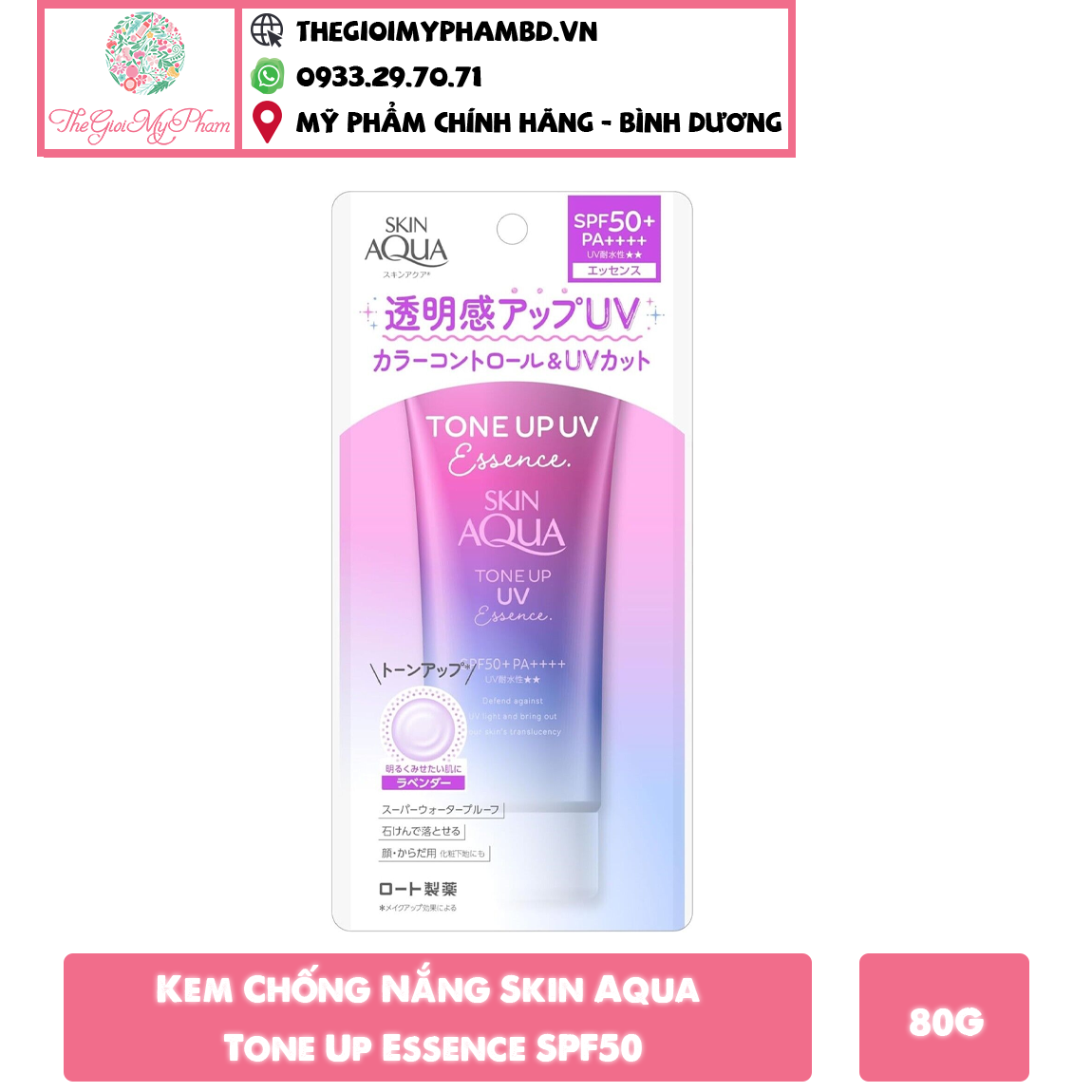 Kem Chống Nắng Skin Aqua Tone Up Essence SPF50 là bản Nhật nội địa là dòng sản phẩm chống nắng dành cho da mặt , giúp bảo vệ làn da trước tia UVA/UVB hiệu quả suốt nhiều giờ liền, là dòng chống nắng nâng tone, với công thức kiểm soát màu và ánh sáng.