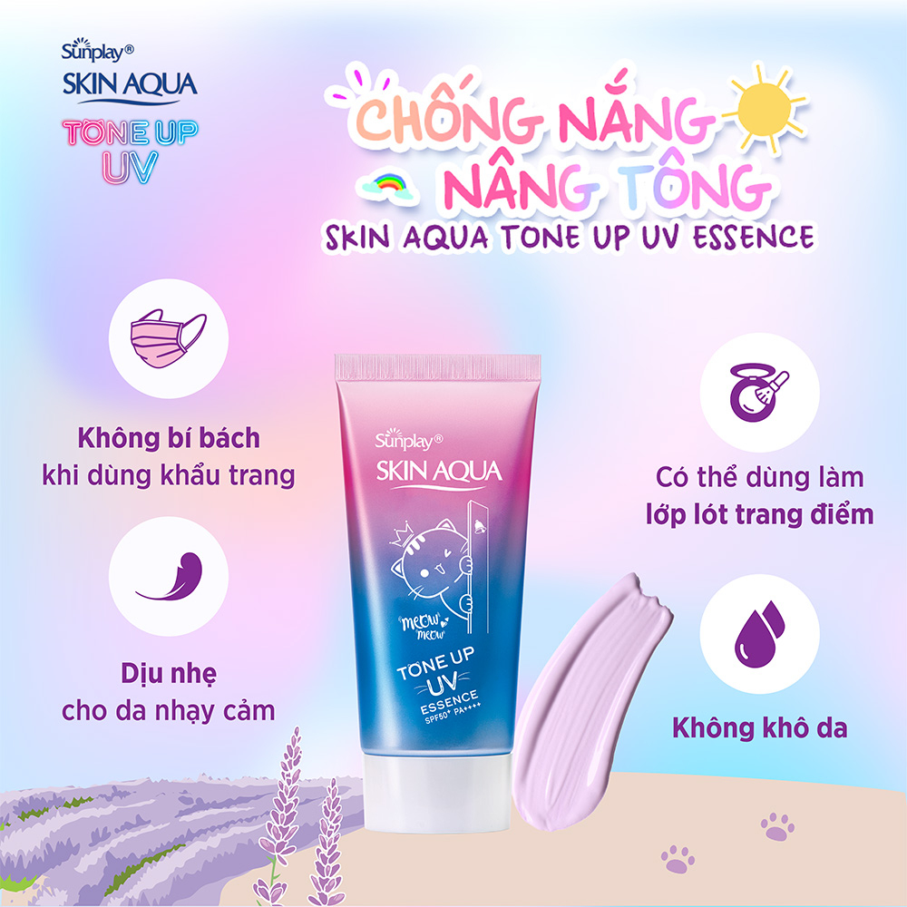 Tinh Chất Chống Nắng Hiệu Chỉnh Sắc Da Sunplay Skin Aqua Tone Up UV Essence Lavender giúp điều chỉnh sắc da, chống nắng hiệu quả với các thành phần chống nắng ưu việt, giúp bảo vệ da suốt nhiều giờ liền.
