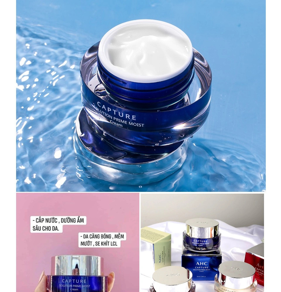 Kem Dưỡng AHC Capture Solution Prime Cream Moist Cấp ẩm, nuôi dưỡng làn da hiệu quả với các dưỡng chất cần thiết cùng kem dưỡng AHC Capture Solution Prime Moist 50ml chuẩn Hàn mang lại cho làn da trẻ trung, căng mịn