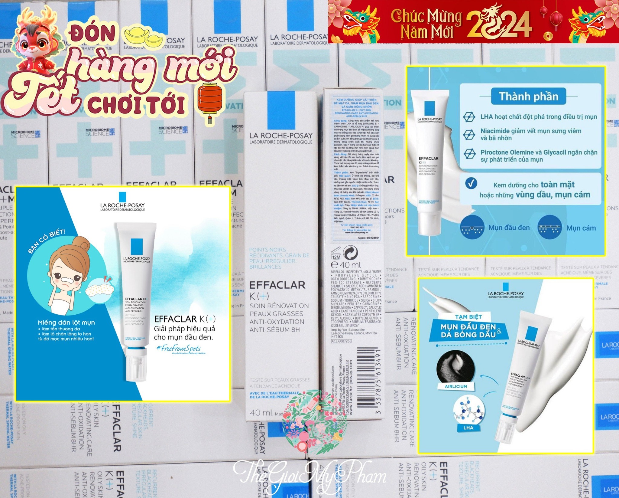Kem dưỡng giúp cải thiện bề mặt da, giảm mụn đầu đen và giảm nhờn La Roche Posay Effaclar K+ 40Ml với sự kết hợp của những hoạt chất như LHA, Airlicium, Sebulyse giúp giảm mụn, thông thoáng lỗ chân lông, kiểm soát bã nhờn.