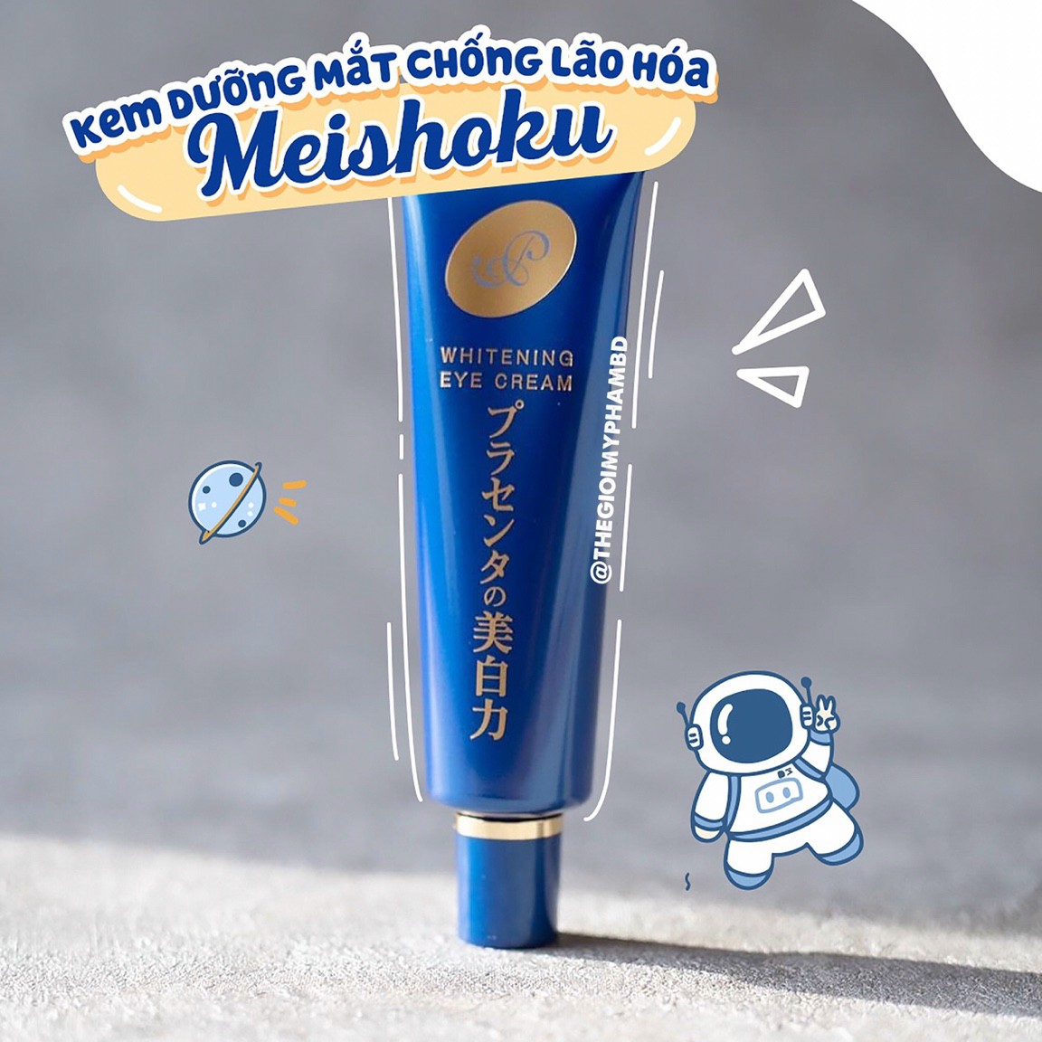 Kem Dưỡng Mắt Meishoku Whitening Eye Cream là thương hiệu nổi tiếng chuyên cung cấp mỹ phẩm tại Nhật Bản, với thành phần dẫn xuất vitamin E và chiết xuất từ nhau thai giúp ngăn chặn và ức chế quá trình hình thành và phát triển của sắc tố melanin nguyên nhân gây nám tàn nhang..., cũng thành phần collagen và chiết xuất từ ý dĩ giúp cải thiện nếp nhă, tăng độ đàn hồi cho vùng da quanh mắt.