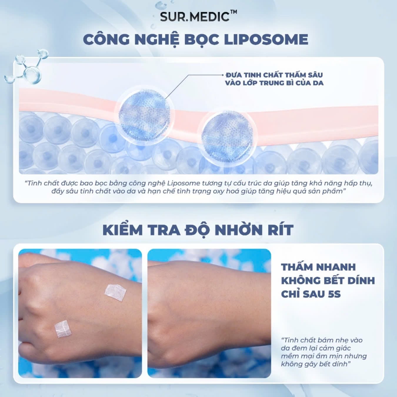 + Cấp ẩm đa tầng, cho da căng bóng.