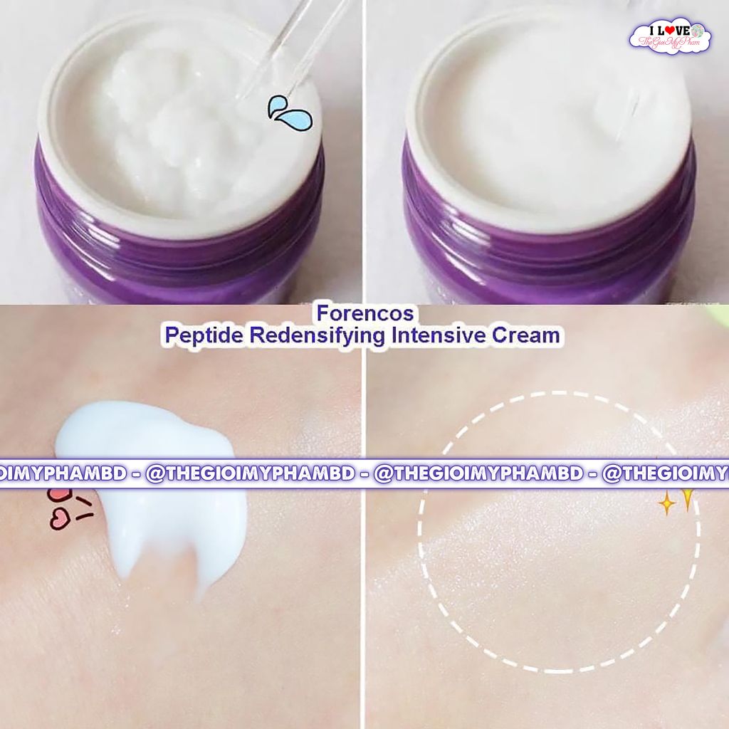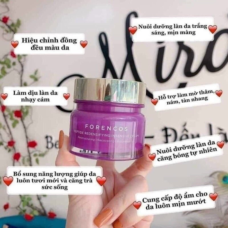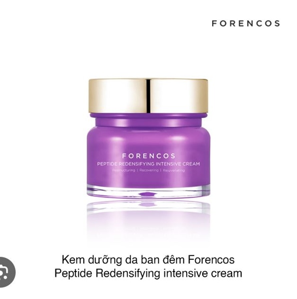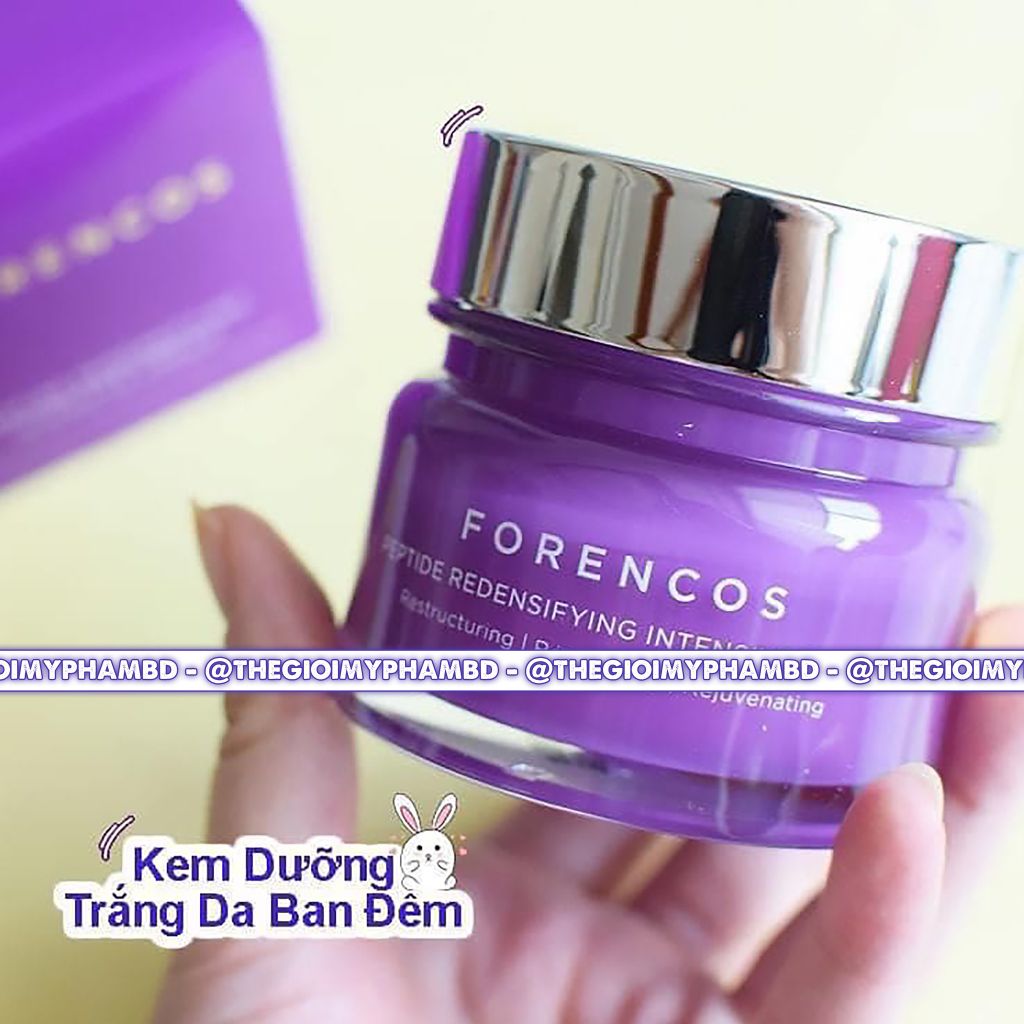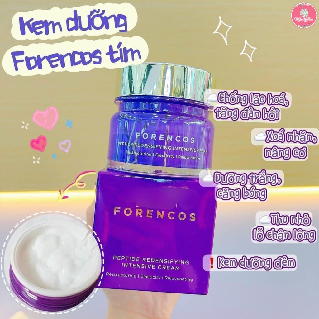 Kem Forencos Peptide Redensifying Intensive Cream 50ml ( Tím ) là dòng sản phẩm dưỡng da ban đêm được các tín đồ skincare ưa chuộng và thích thú với khả năng mang lại cho bạn làn da trắng sáng mịn màng, trắng mịn tự nhiên nhất, cấp ẩm và cải thiện tông da ngay lập tức và duy trì làn da trắng, mịn mướt suốt cả ngày