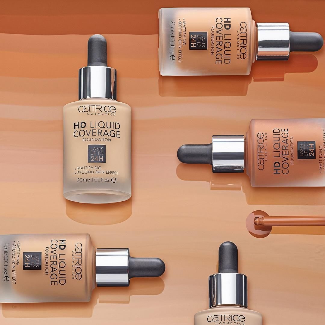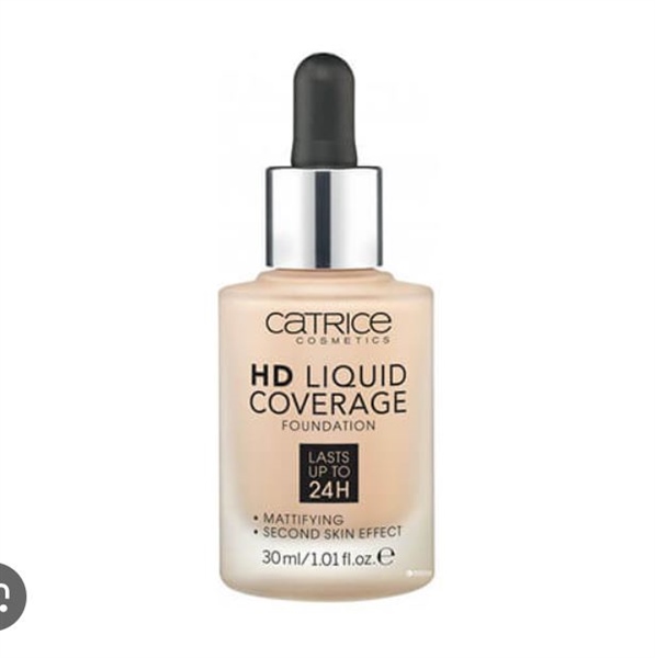 Kem Nền Catrice HD Liquid Coverage Foundation tạo một lớp nền mỏng, đều màu, trong suốt. Không chỉ là sản phẩm trang điểm mà kem còn có tác dụng như một loại kem dưỡng. Một nghiên cứu về da liễu cho thấy chỉ sau 8 tuần sử dụng hàng ngày, các đốm sẫm màu có thể sáng lên trông thấy, ngăn ngừa sự ửng đỏ trên da.