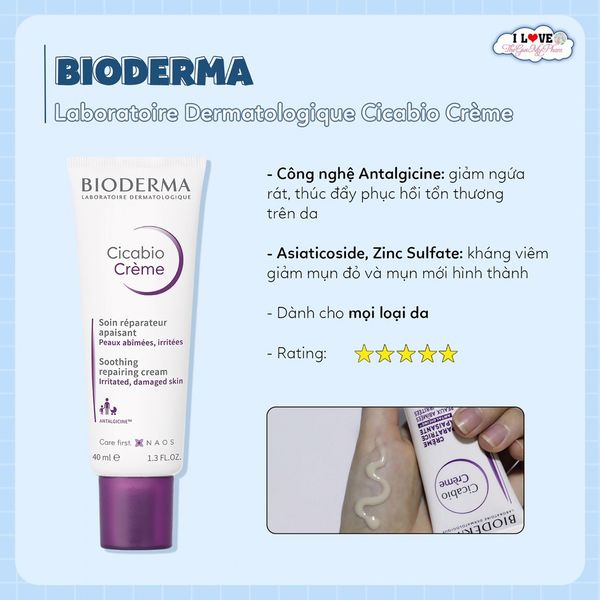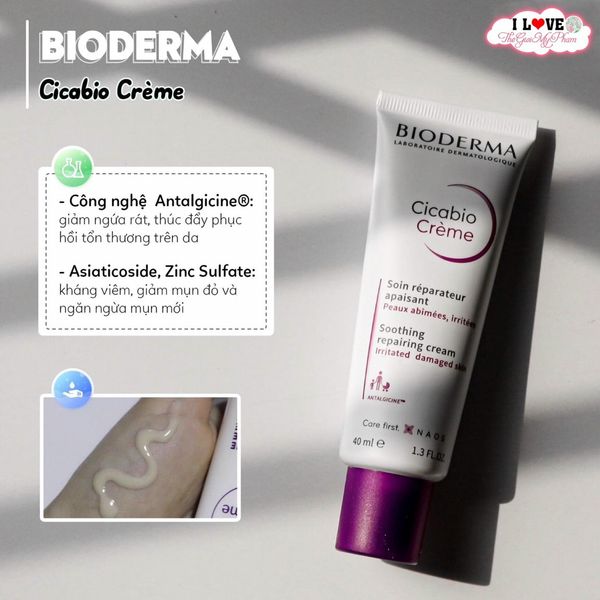 Kem Dưỡng Phục Hồi Bioderma Cicabio Creme giúp tăng cường tốc độ phục hồi làn da hư tổn nhanh gấp 3 lần bình thường so với không sử dụng, giúp giảm cảm giác khó chịu, ngứa ran, có khả năng dưỡng ẩm và phục hồi da, Cicabio Crème cực kì lành tính đối với làn da dễ kích ứng, đồng thời cải thiện hiệu quả cấu trúc da hư tổn sau mụn hay sau quá trình xâm lấn (lăn kim/ peel/ laser…)