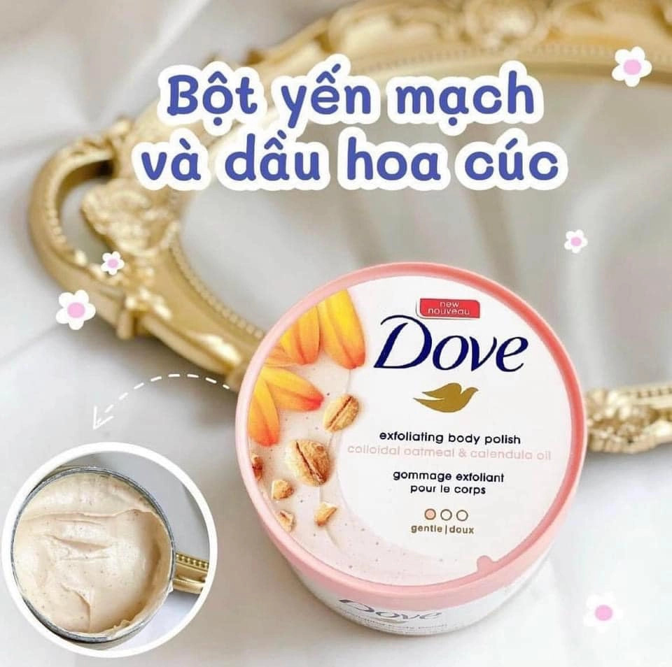 Dove Tẩy Tế Bào Chết Body Yến Mạch & Dầu Hoa Cúc 298g