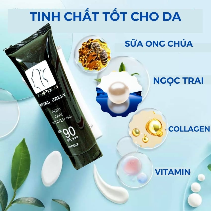 + Kem dưỡng trắng da toàn thân Typolo Royal Jelly với sự kết hợp giữa Bột Ngọc Trai và Sữa Ong Chúa tập trung đẩy lùi tế bào chết trên da, làm mờ nhạt các vết thâm, làm sạch các lớp cutin đã lão hóa trên bề mặt da và thúc đẩy quá trình tái tạo da mới, làm sáng màu da, giảm thiểu những vùng da tối màu, da sạm.