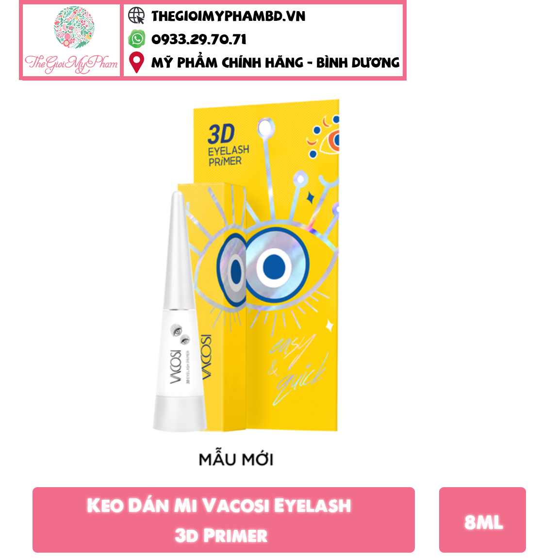 Keo Dán Mi Vacosi Natural Studio Eyelash 3D Adhesive 8ml là dụng cụ hỗ trợ trang điểm đến từ thương hiệu mỹ phẩm Vacosi của Hàn Quốc, với chất keo tự nhiên, an toàn, giúp kết hợp lông mi giả và lông mi thật với nhau một cách hoàn hảo tạo thành làn mi dài, cong vút tự nhiên. Sản phẩm được nhiều chuyên gia trang điểm tin dùng vì độ bền đẹp và bám dính lâu.