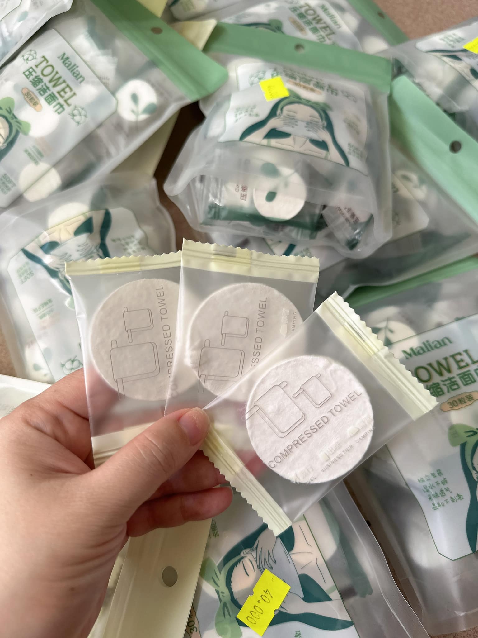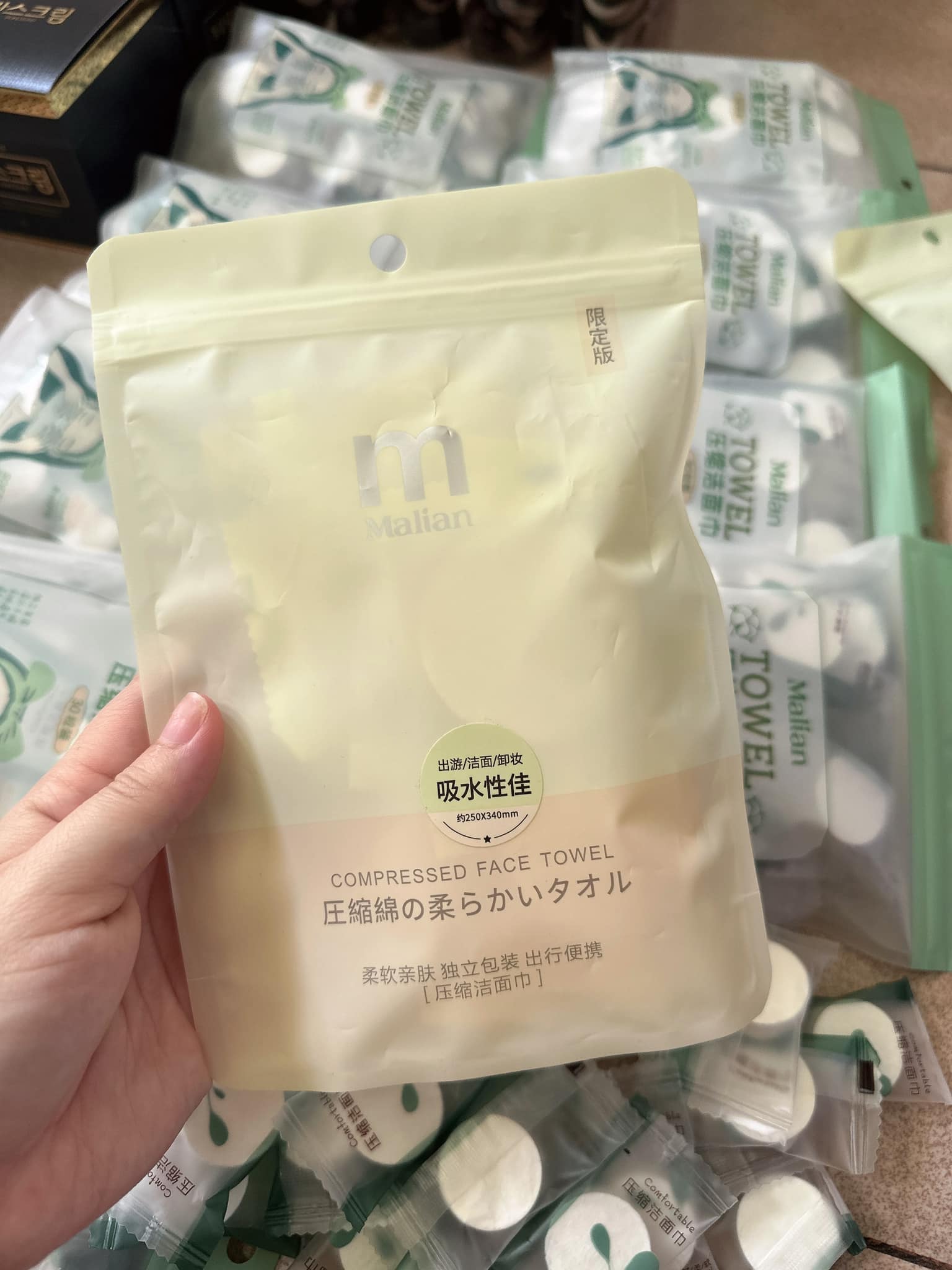 Ngâm trong nước và để nở ra tạo thành một chiếc khăn vuông kích thước
