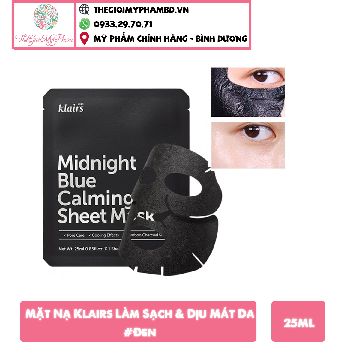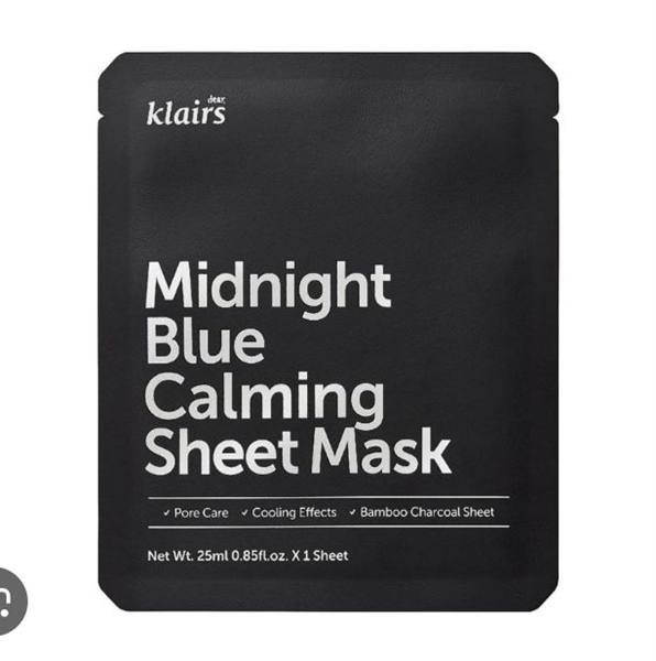 Mặt Nạ Hỗ Trợ Làm Sạch & Dịu Mát Da Klairs Midnight Blue Calming Sheet Mask 25ml là sản phẩm mặt nạ đến từ thương hiệu Dear Klairs – trực thuộc By Wishtrend Hàn Quốc, thuộc dòng Midnight Blue chuyên biệt cho da nhạy cảm và dễ kích ứng, giúp làm dịu da giảm viêm sưng, mẩn đỏ hiệu quả, được rất nhiều tín đồ làm đẹp ưa chuộng.