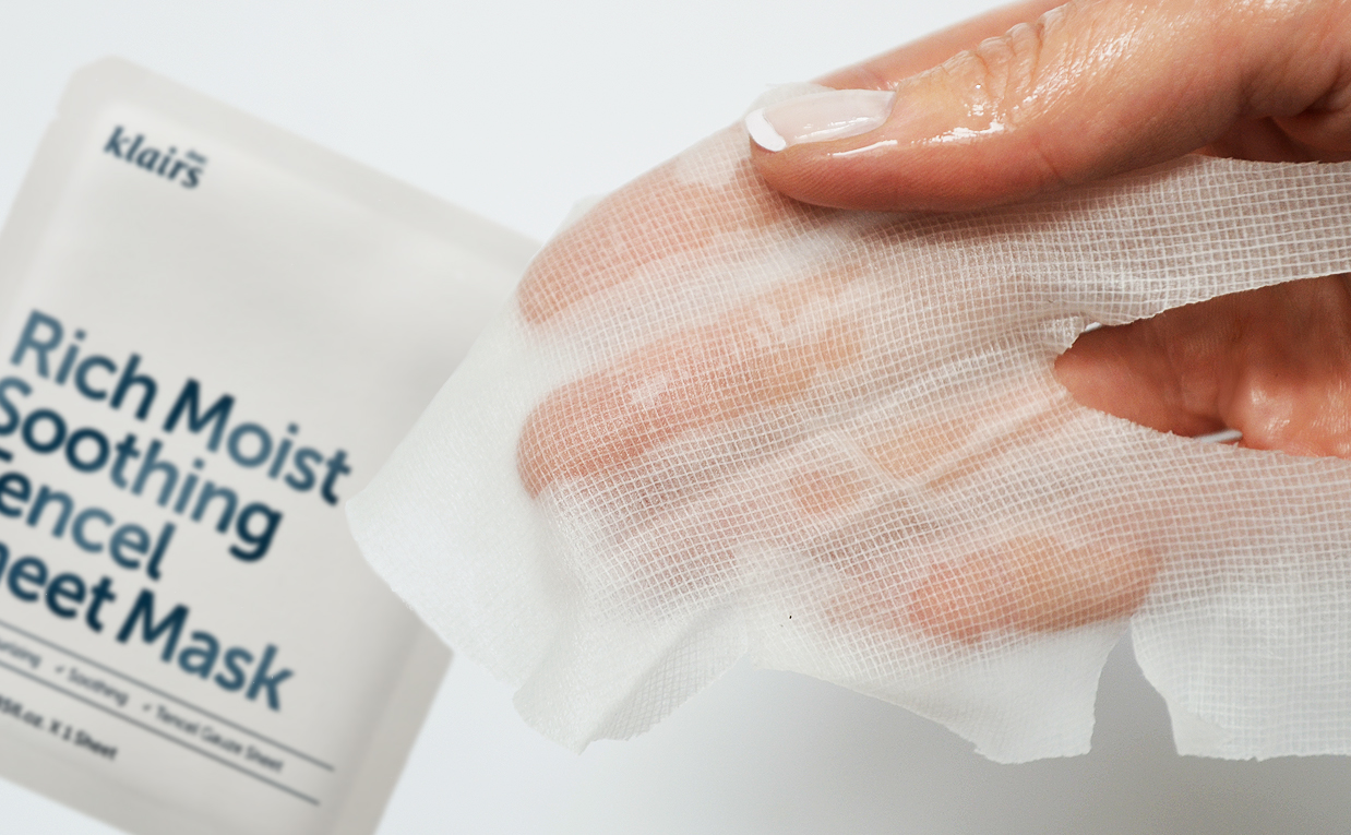 Miếng mặt nạ của Klairs được làm từ sợi bông 100% và vải Tencel (một loại vải sinh học cao cấp rất an toàn với da) giúp giảm thiểu kích ứng da.