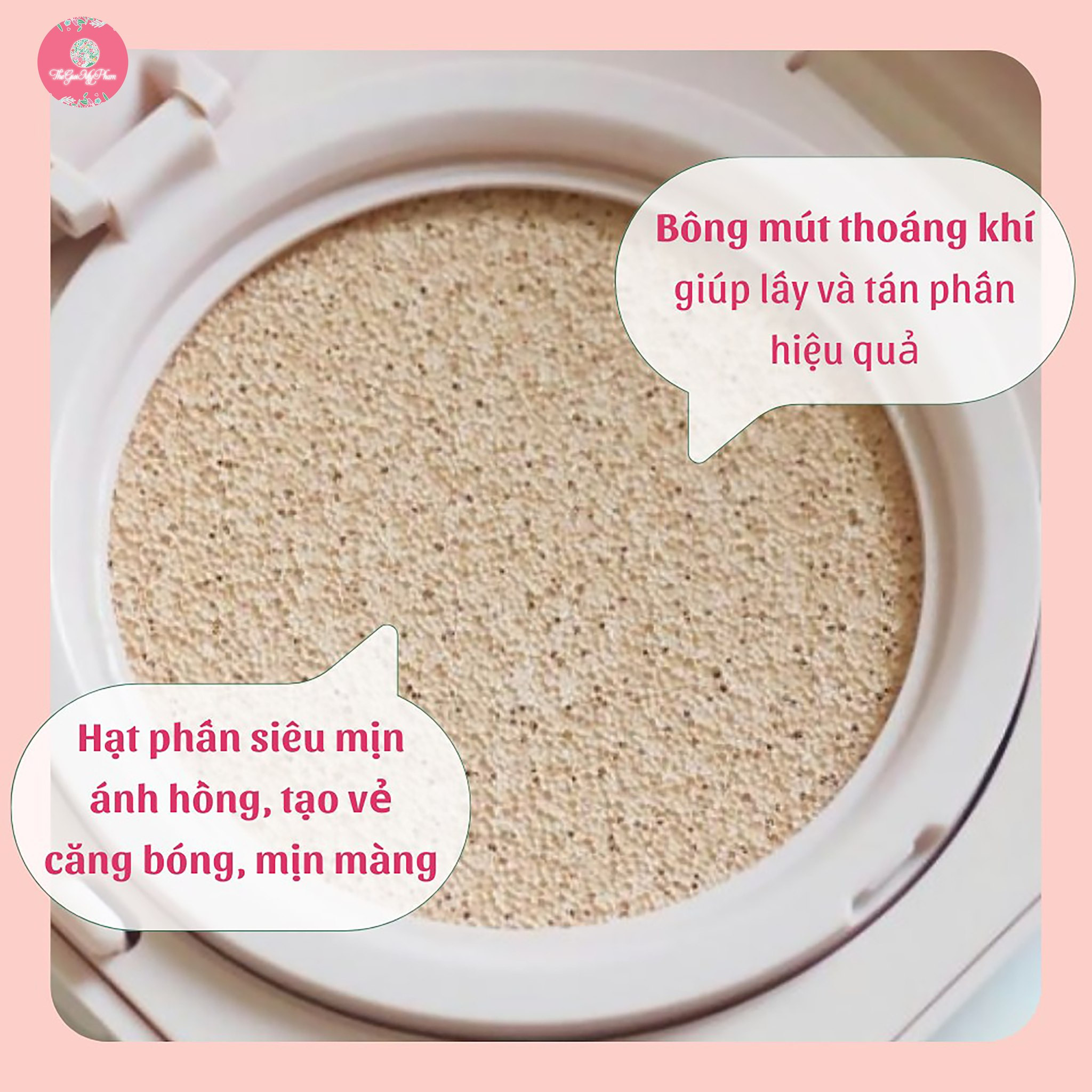 Bông phấn có khe tạo thành túi khí từng lớp phấn có thể bám chặt trên da, dàn trải kem một cách đồng đều.