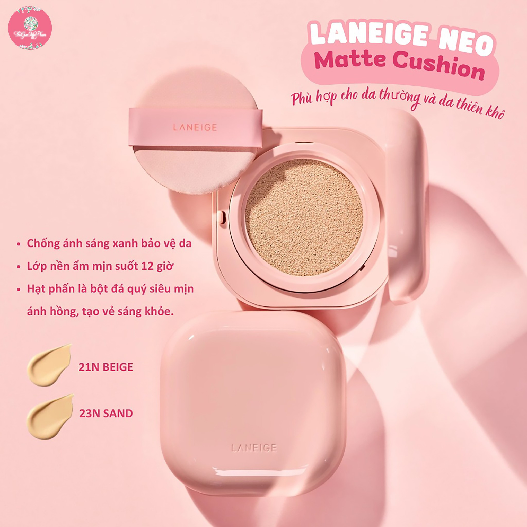 Phấn Nước Laneige Neo Glow Cushion SPF50 PA+++ là dòng phấn nước mới vừa ra mắt được thiết kế dành riêng cho làn da khô, da thiếu ẩm, xỉn màu với hiệu ứng căng mướt, mọng nước suốt 24 tiếng và có khả năng bắt sáng như viên kim cương.