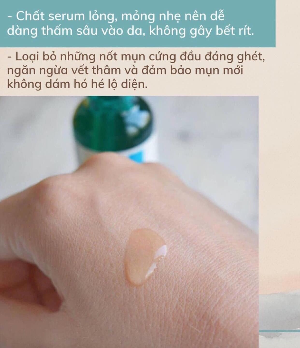 - Sử dụng 1-2 giọt tinh chất thoa lên vùng da mụn.