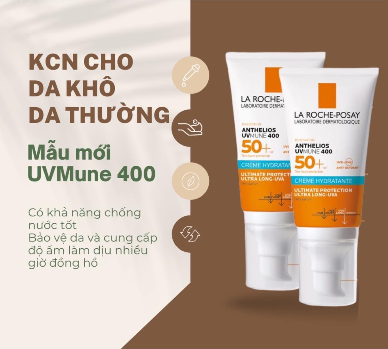 Là phiên bản cải tiến – kem chống nắng La Roche-Posay Anthelios UVmune 400 Hydrating Cream SPF50+ có khả năng dung nạp rất cao trên da nhạy cảm, an toàn ngay cả với vùng da mỏng xung quanh mắt. Được bổ sung Glycerin – thành phần hoạt chất giúp cung cấp độ ẩm liên tục cho da trong suốt 24 giờ kết hợp cùng nước suối khoáng La Roche-Posay giúp làm dịu và chống lão hóa da hiệu quả.