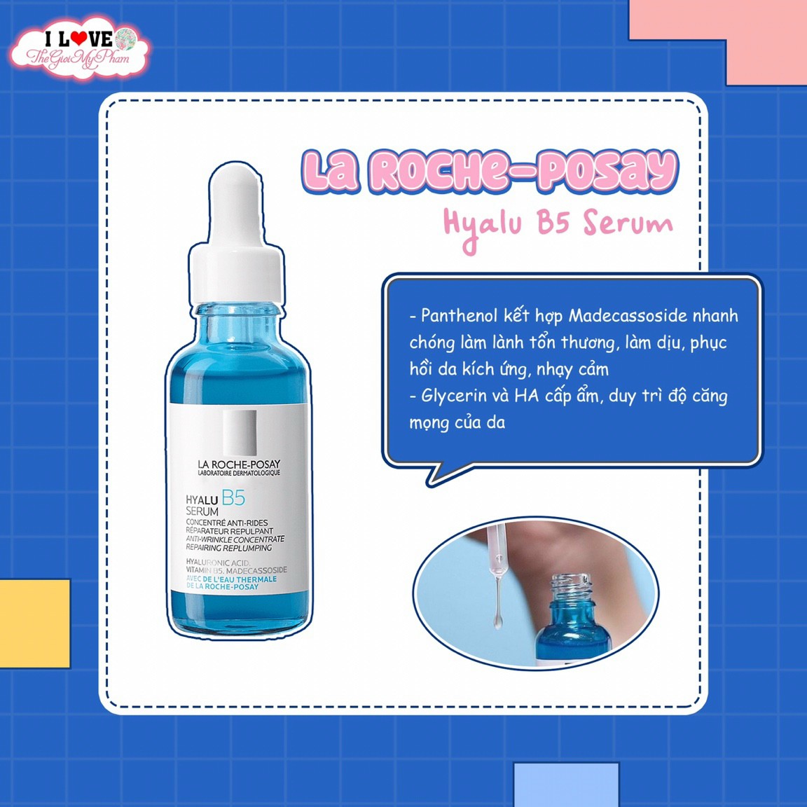 Tinh Chất Phục Hồi Da La Roche-Posay Hyalu B5 Serum là tính chất với công thức giúp tái tạo & phục hồi da độc đáo gồm các thành phần Hyaluronic Acid nguyên chất, Vitamin B5 và Madecassoside, giúp làn da căng mịn, trở nên săn chắc & đàn hồi hơn, đồng thời giúp phục hồi hàng rào bảo vệ da và kích hoạt tái tạo da