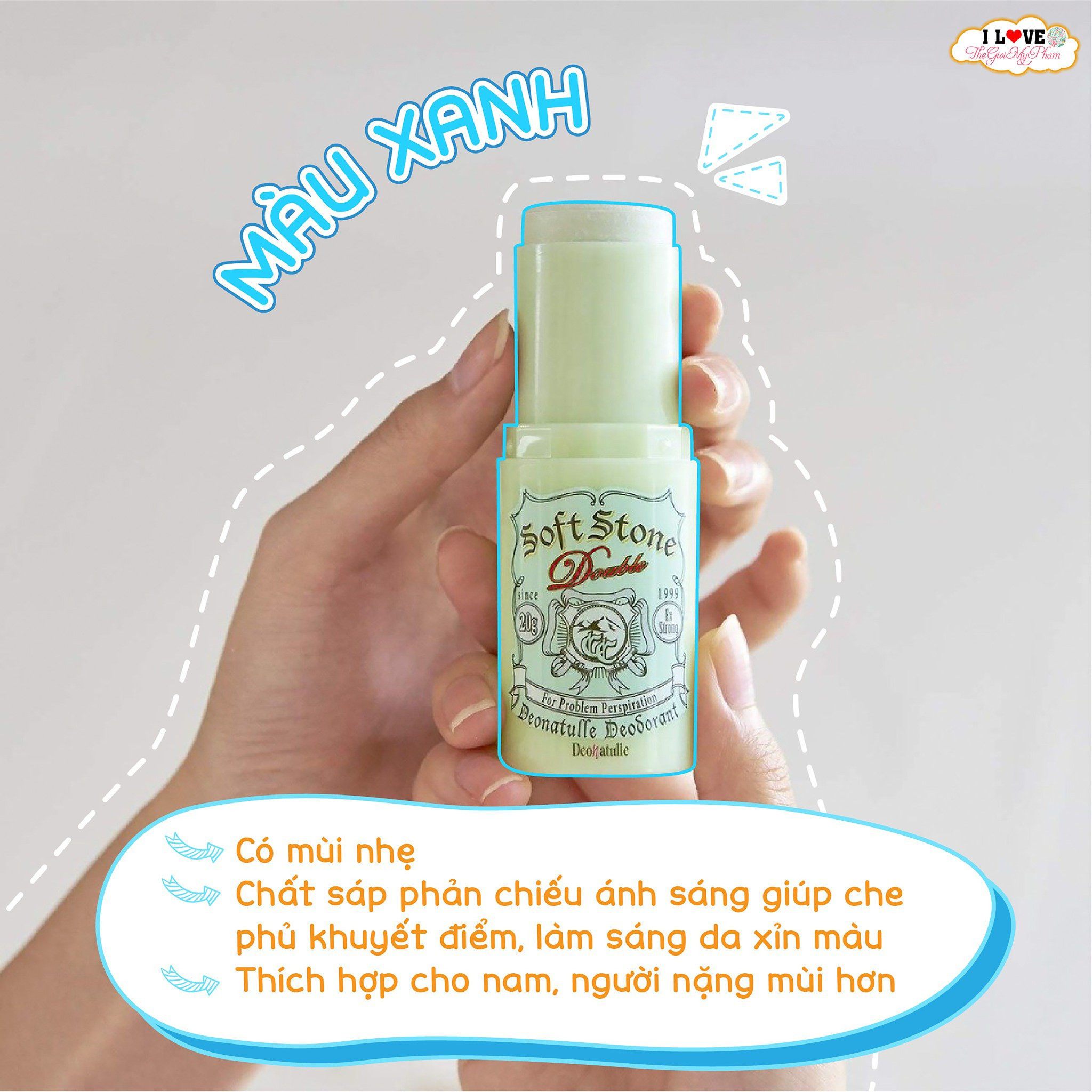 Lăn khử mùi Soft Stone 20g Xanh được thương hiệu Deonatulle lần đầu ra mắt vào năm 2017 và nhanh chóng chiếm vị trí “top sản phẩm khử mùi tốt nhất tại Nhật Bản”. Sản phẩm được chiết xuất từ bột đá khoáng tự nhiên Alum có hiệu quả cao trong việc khử mùi, giảm tiết mồ hôi giữ cho vùng da dưới cánh tay luôn thơm tho, khô thoáng.