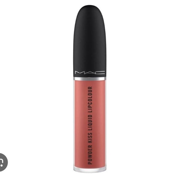Son kem Mac Powder Kiss Liquid Lipcolour Màu 989 Mull It Over được pha trộn giữa tông màu cam và hồng đất cực xinh xắn và chuẩn màu.