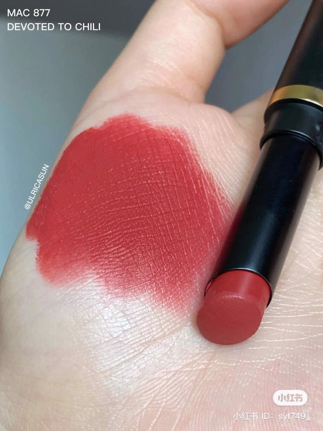 Son MAC #877 Devoted to Chili màu đỏ gạch – mang một sắc đỏ đất gần giống với em Chili, sắc son phù hợp với mọi tone da. Đặc biệt chất son được cải tiến vượt trội chắc chắn sẽ khiến nàng hài lòng.