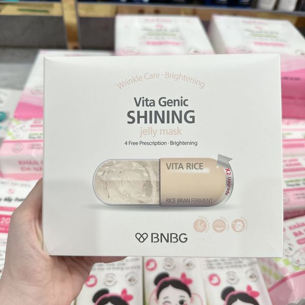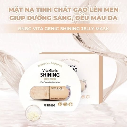 - BNBG Vita Genic Jelly Mask được thiết kế rất bắt mắt, mặt nạ có dạng miếng giấy cotton và kèm theo các loại vitamins và khoáng chất thiết yếu cho làn da với hàm lượng cao lên đến 20000ppm.