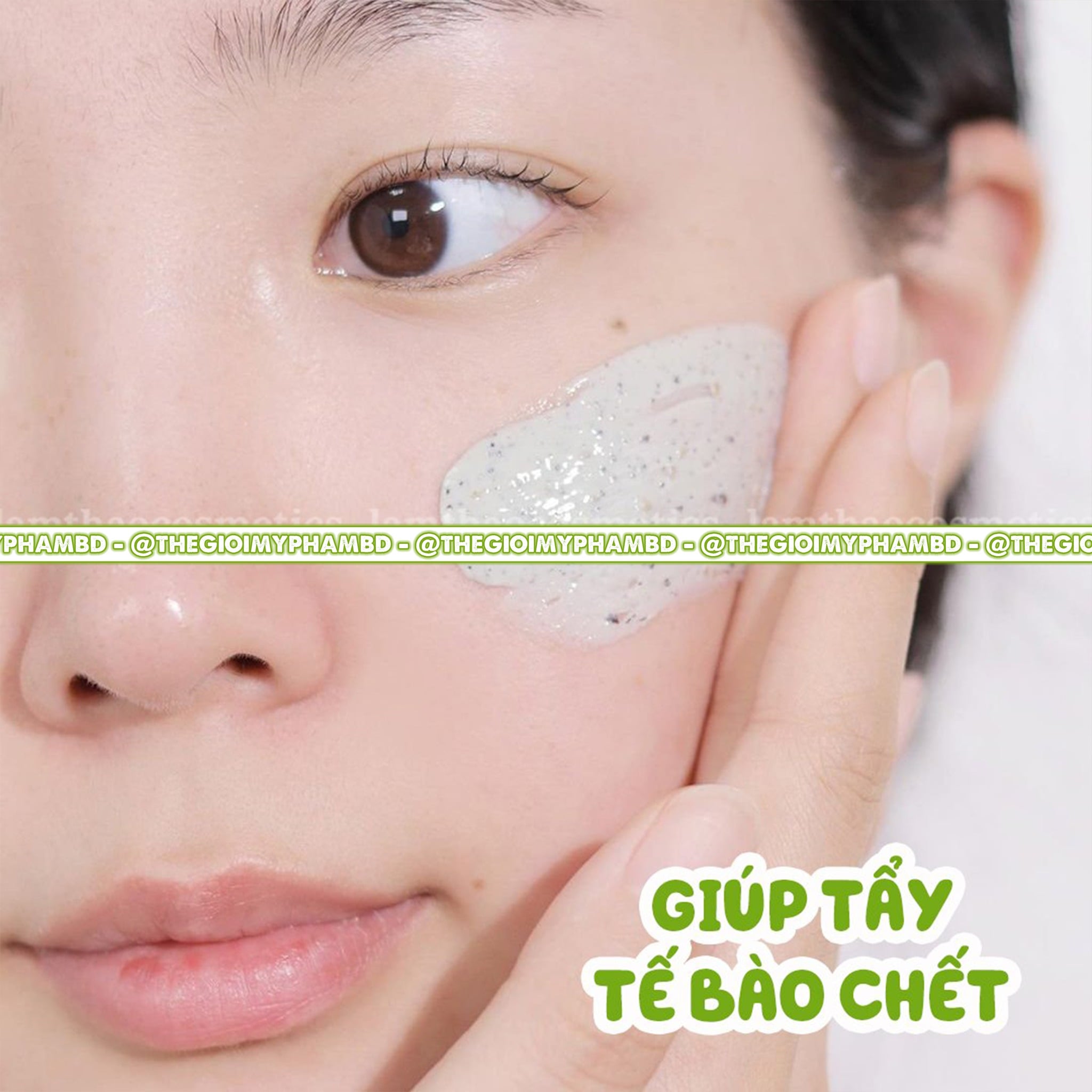 - Texture dẻo mịn dễ tán giúp tẩy da chết dịu nhẹ mà không gây đau rát, rửa xong da vẫn ẩm mịn chứ bị khô căng, cảm giác fresh và láng mịn.