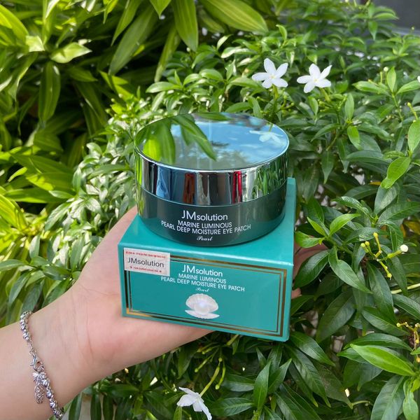 - Hộp XANH mask ngọc trai: Mặt nạ này sẽ có chức năng dưỡng ẩm sâu, giảm thâm quầng mắt và cải thiện nếp nhăn với chiết xuất đến từ ngọc trai JMSolution Marine Luminous Pearl Deep Moisture Eye Patch