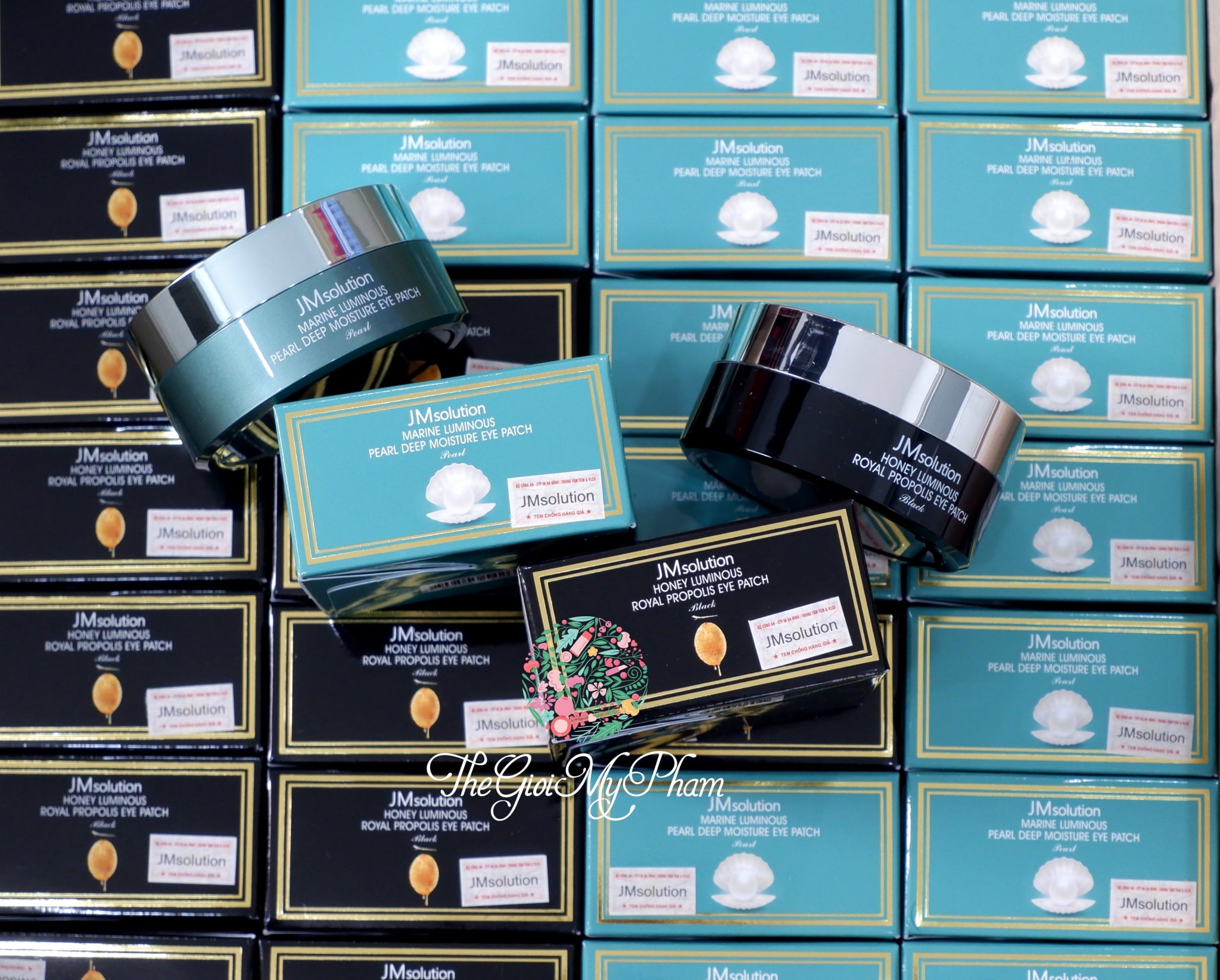 - Hộp ĐEN mask vàng mật ong: Đây là dòng cấp ẩm, giải tỏa mệt mỏi và dưỡng vùng da mắt săn chắc hơn với chiết xuất đến từ mật ong JMsolution Honey Luminous Royal Propolis Eye Patch