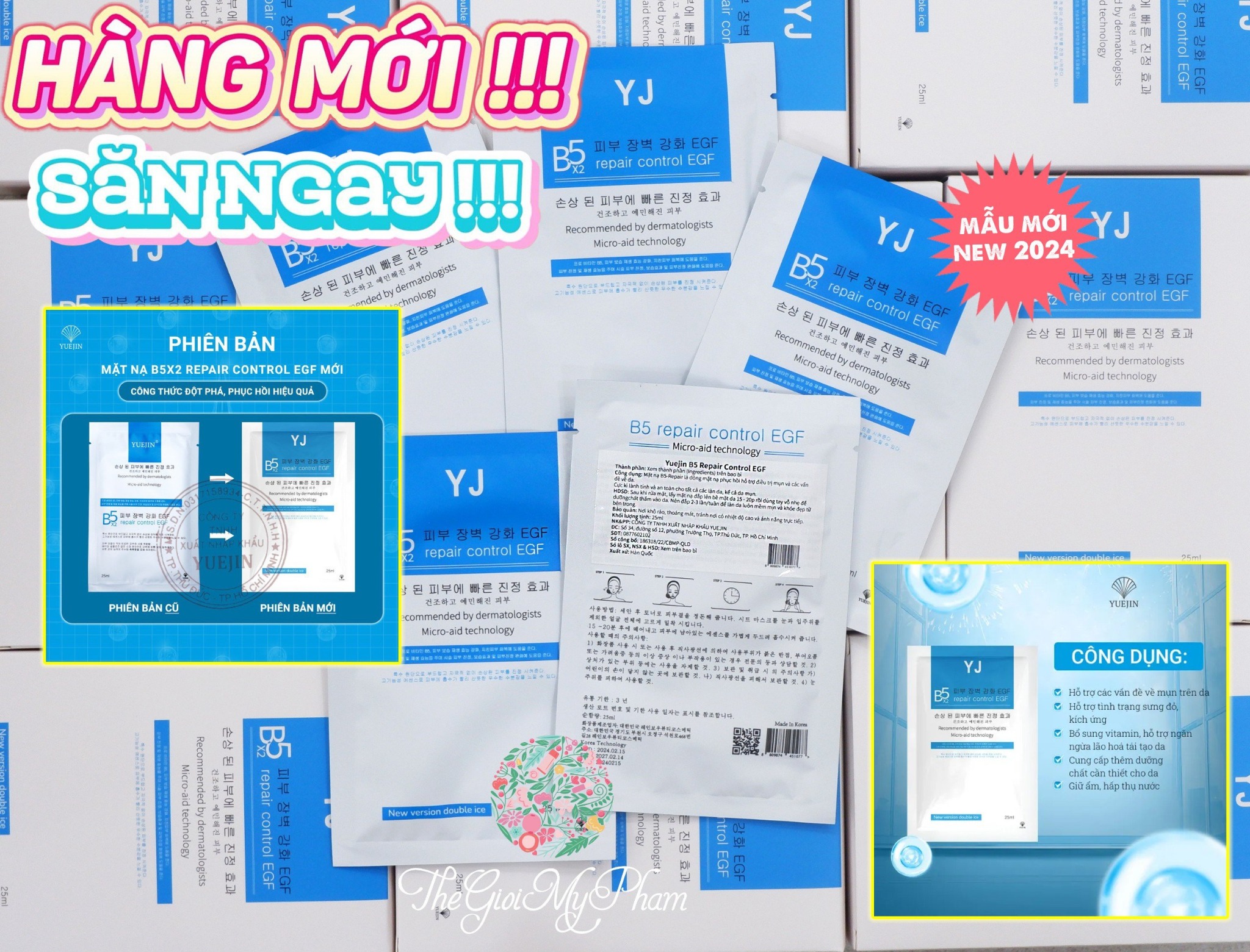 - Phục hồi da, giảm kích ứng: B5 Repair Control EGF dòng mặt nạ phục hồi da, dưỡng da giảm khó chịu, giảm đỏ, giảm sưng tấy, châm chít da… Dưỡng da nhanh lành sẹo.