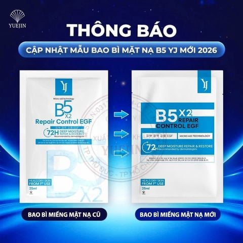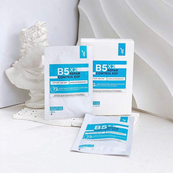 Phục hồi da, giảm kích ứng: B5 Repair Control EGF dòng mặt nạ phục hồi da, dưỡng da giảm khó chịu, giảm đỏ, giảm sưng tấy, châm chít da… Dưỡng da nhanh lành sẹo.