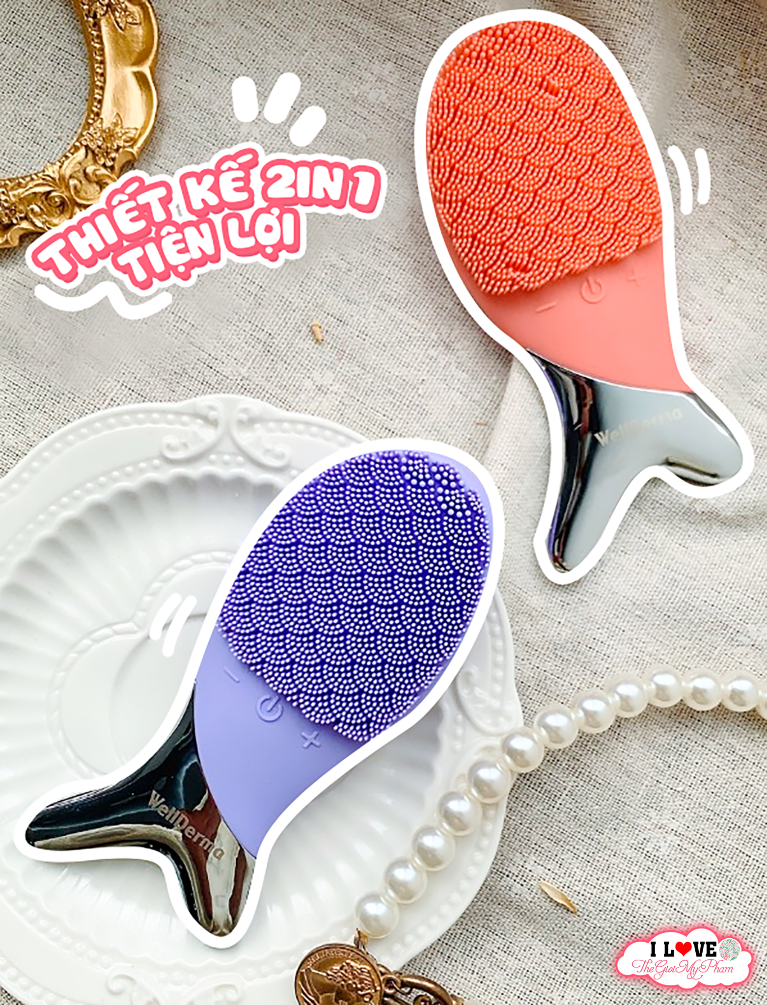✔ Máy rửa mặt WellDerma Cleansing Fish mẫu mới hỗ trợ cho những người make up, dùng nhiều loại mỹ phẩm, kem chống nắng.