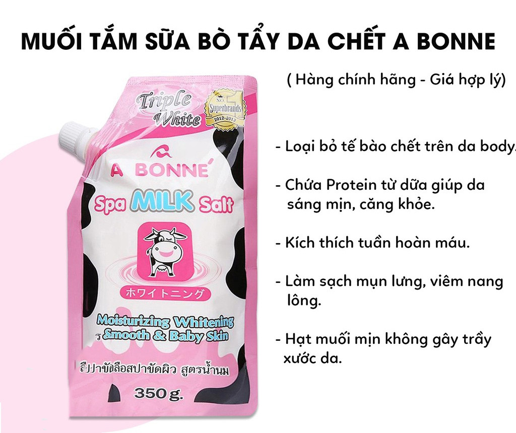 Muối Tắm A Bonne Sữa Bò Tẩy Da Chết, Trắng Da 350g